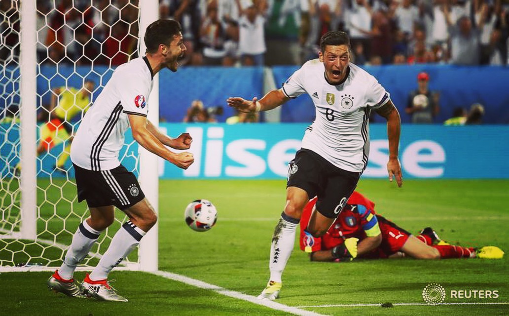 - Mesut Özil nach seinem Treffer zum 1:0 im Viertelfinale gegen Italien